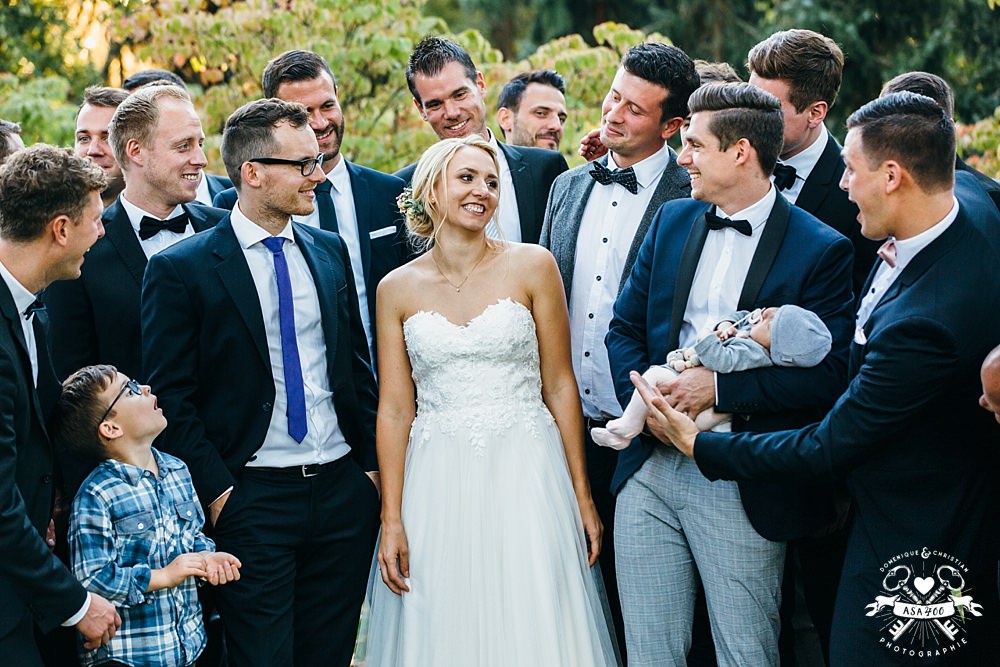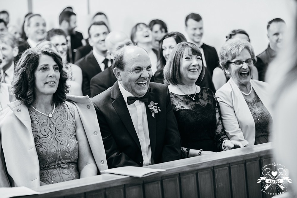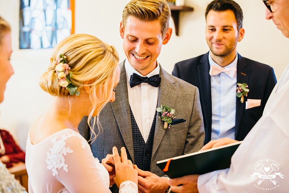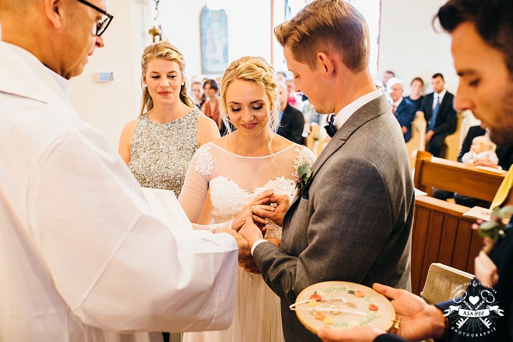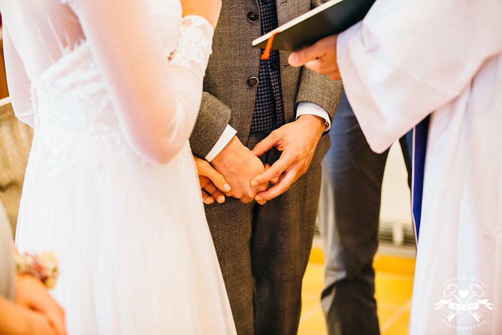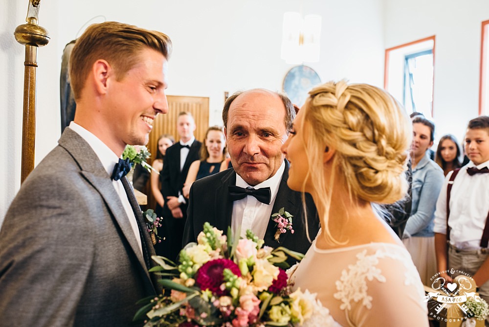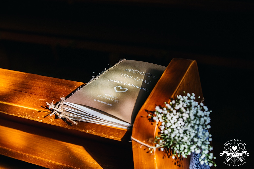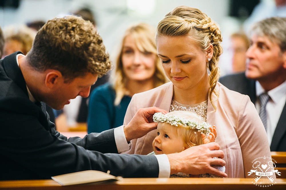 Die Kirche war liebevoll geschmückt, die Band schon am proben und wir hatten ein paar Minuten für den Check von Licht und Location. Und dann kamen die auch schon die ersten Gäste. An diesem Tag waren so viele bekannte Gesichter zu Gast, dass wir gar nicht wussten wen wir zu erst begrüßen sollten. Das ist ein so wunderbares Gefühl so viele liebe und glückliche Paare zu treffen, die bereits vor unseren Kameras standen – als verliebtes Pärchen, glückliches Brautpaar oder als frische Eltern… Das Besondere daran ist für uns, dass all unsere Paare uns so vertraut sind. Wir begleiten sie ein Stück ihres Weges und sie bleiben uns für immer in Erinnerung.