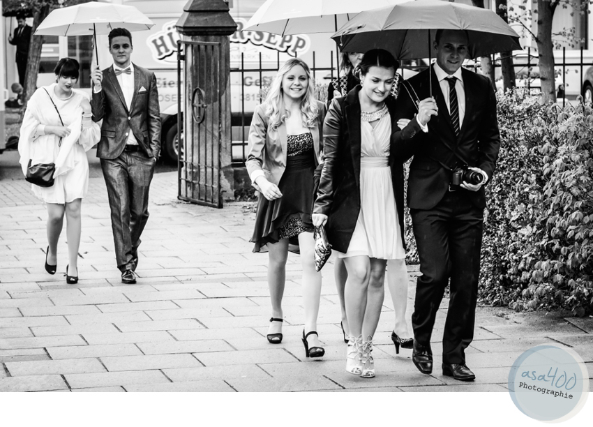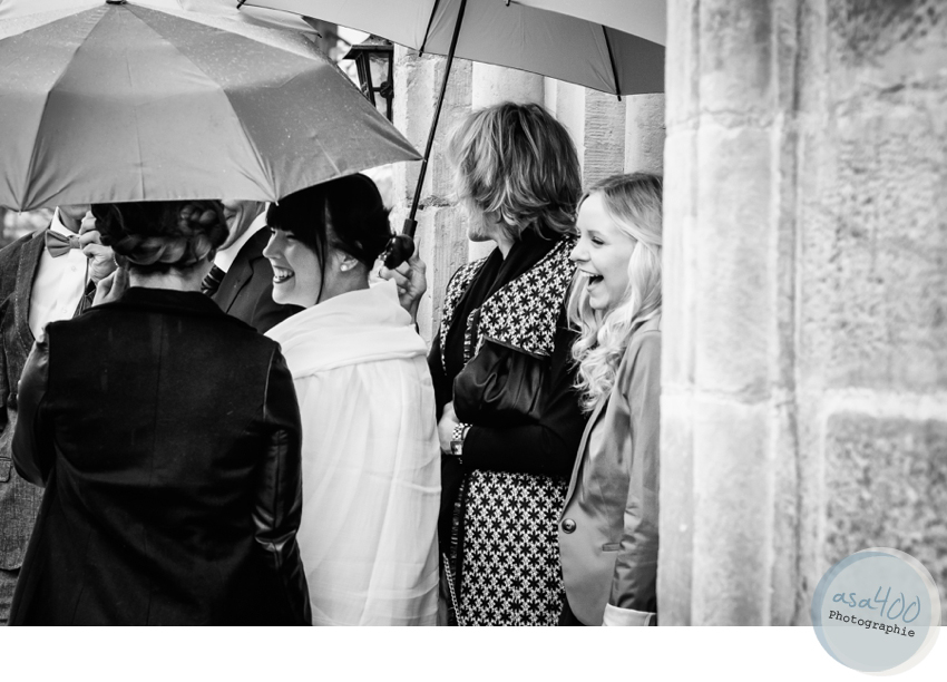 Irgendwann ist immer das erste Mal: unsere erste Hochzeit im Regen, Regen, Regen… Tja, in unserer Notfallausrüstung für Hochzeiten sind immer auch ein paar Regenschirme, aber noch nie zuvor sollten sie wirklich zum Einsatz kommen.