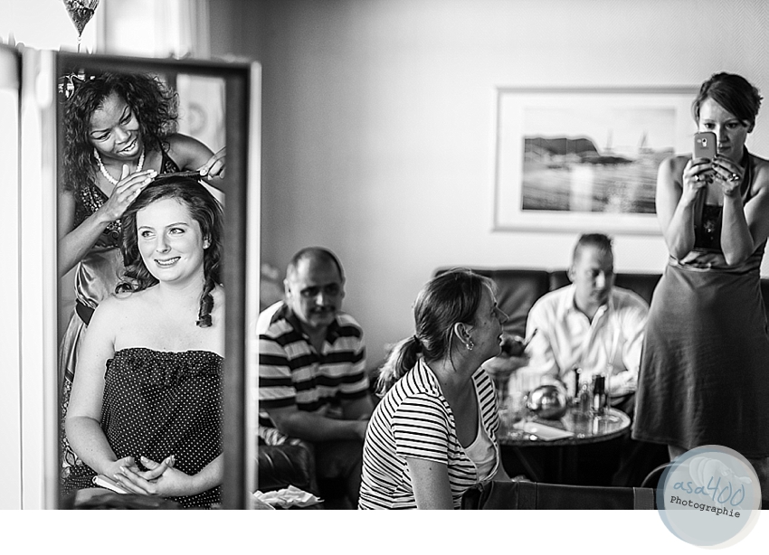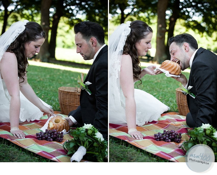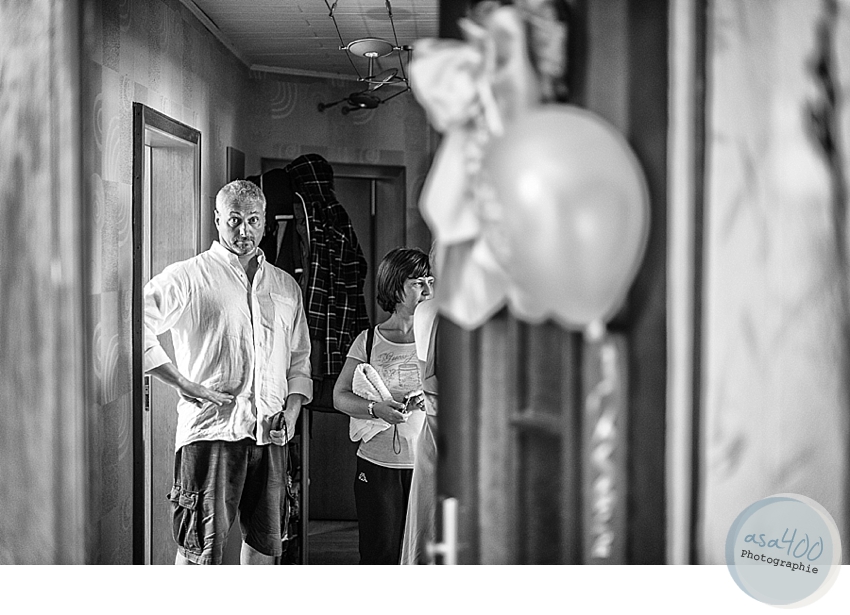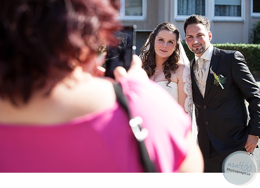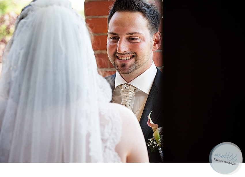 Es war wohl einer der heißesten Tage in diesem Jahr. 36 Grad zeigte das Thermometer schon morgens um halb zehn. Bei unserer eigenen Hochzeit war es damals auch so heiß und während unsere Gäste schwitzten, bekamen wir das alles gar nicht mit. Doch als Hochzeitsfotografen unterwegs sieht das anders aus… Die Notfall-Regenschirme konnten wir jedenfalls getrost zu Hause lassen… 🙂