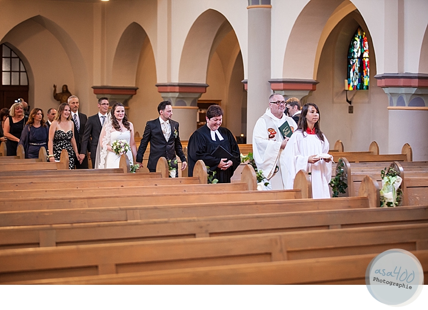 Anschließend wurden Maren & Marco von ihrer Familie und ihren Freunden an der St.Joseph-Kirche in Hannover/List in Empfang genommen. Dort gaben sie sich das Ja-Wort. Und zum Glück hatten die Beiden auch hier gut vorgesorgt und für ihre Gäste Fächer in den Bankreihen verteilt. Alle Gäste waren am fächern und wedeln und die kühle Luft tat allen richtig gut! 🙂 Im Anschluss wurde dann nach den obligatorischen Gruppenfotos im Alcanto so richtig gefeiert.