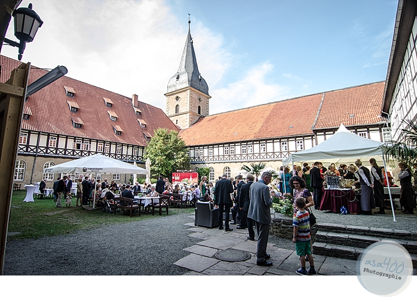Anschließend wurde im riesigen Innenhof des Klosters angestoßen und gefeiert. Und auch dort durften wir noch ein wenig in den Genuss von Alexanders Gesangstalent kommen. Und während die 180 Gäste noch den leckeren Kuchen und die kühlen Getränke genießen konnten, haben sich Diana & Knut ganz in unsere Hände begeben und sind mit uns ein wenig über das Klostergelände spaziert, um ein paar gemeinsame Fotos zu machen…