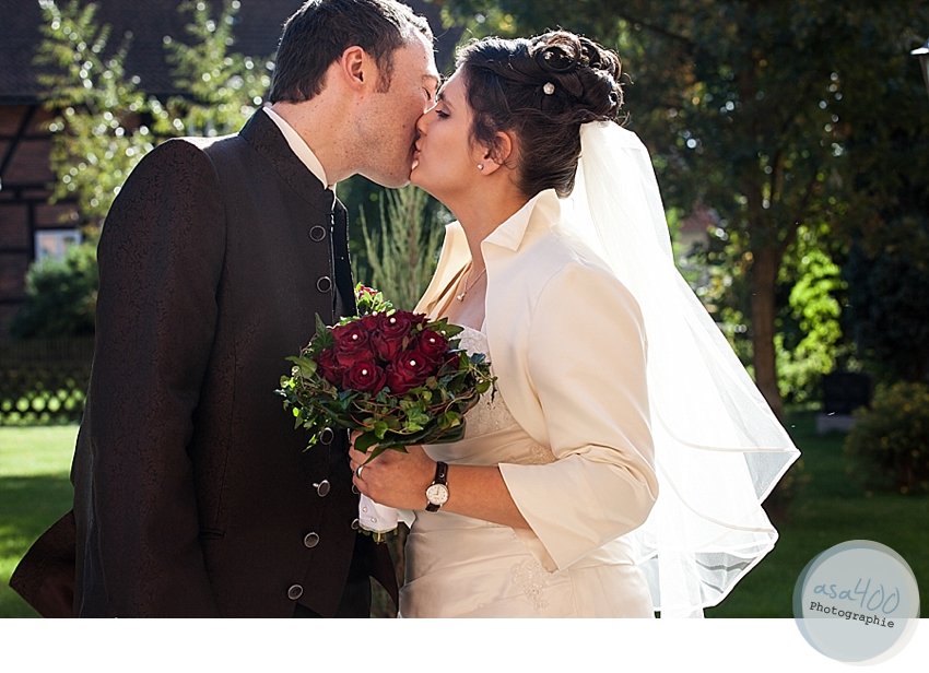 Die Beiden gaben sich in der St.Stepahnuskirche in Dinklar das Ja-Wort und obwohl sie es nicht zugeben wollten: ein wenig aufgeregt waren Heike & Mirko schon! 🙂 Aber alles ist gut gegangen und ihre Eheversprechen haben sie souverän vorgetragen (hätten wir wahrscheinlich nicht geschafft!). Nach vielen Umarmungen und Gratulationen sind wir gemeinsam ein paar Kilometer weiter nach Bad Salzdetfurth gefahren, um dort im wunderschönen Kurpark ein paar Erinnerungsfotos von Braut & Bräutigam zu machen. Und so wie man es im September erwartet ließ die Sonne den Himmel richtig schön blau strahlen. Anschließend wurde im Hotel Kronprinz gefeiert – so wie wir es vor drei Jahren auch getan haben! 🙂