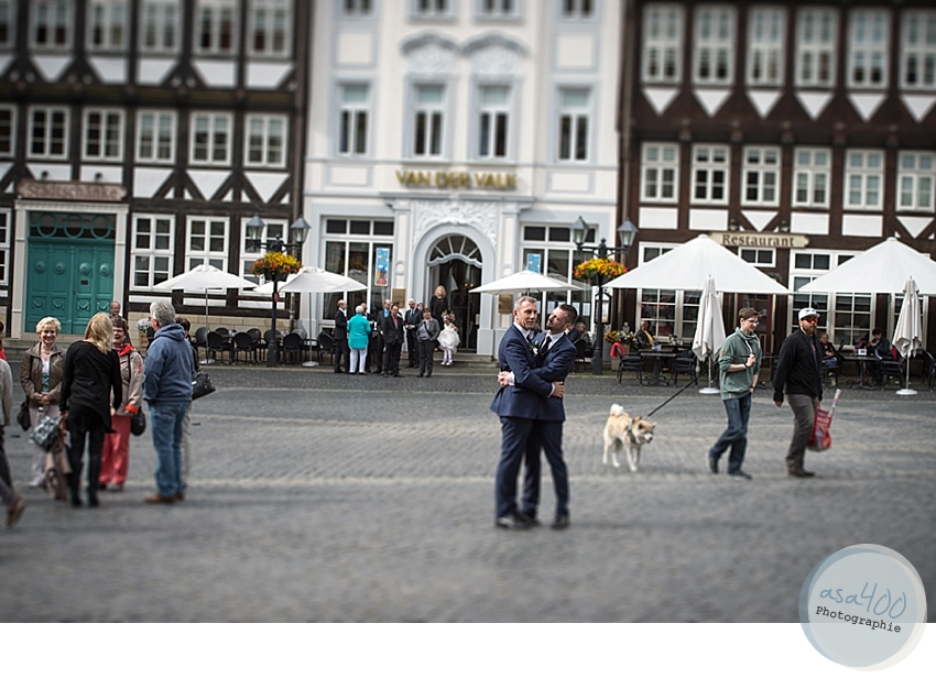 Auf dem Hildesheimer Marktplatz gab es dann auch noch ein paar gemeinsame Paarbilder und dann wurde im Van der Valk-Hotel so richtig schön gefeiert. Mit Prominenz wie Conchita van der Vaart, Jorge Gonzalez, Motsi und Herrn Llambi. Mit Handschellen, Hochzeitstorte und allem was dazu gehört! 🙂 Es wurde ziemlich spät und wir konnten endlich mal wieder das Tanzbein schwingen… (Klappte aber gar nicht. Wir müssen mal wieder in Tanzhaus zu “Fit für die Feier” 😉 ). Und da wir als Hochzeitsfotografen unserer Verschwiegenheitsverpflichtung nachkommen müssen, kommt hier mal ein Blogeintrag ganz aufs Wesentliche beschränkt: Dirk & Florian.