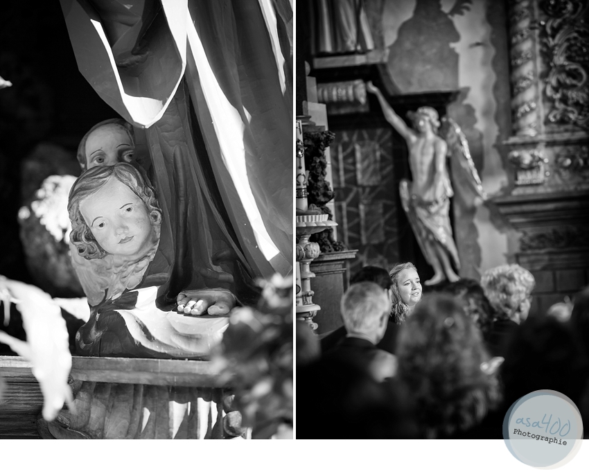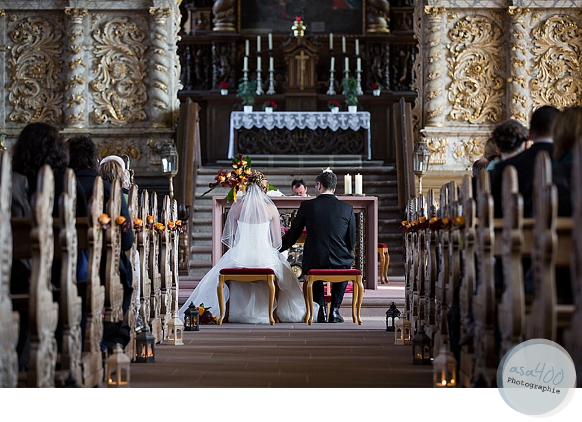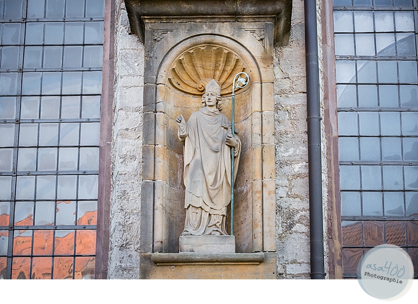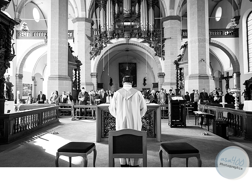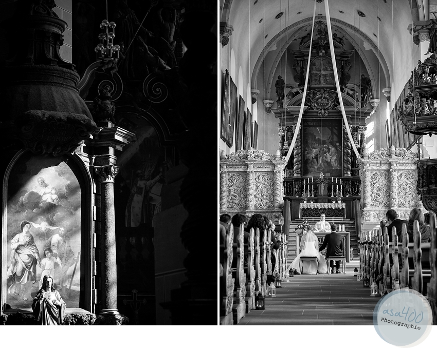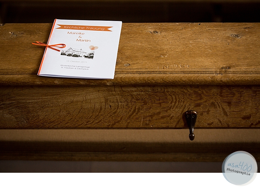 Als wir an diesem Hochzeitstag zum ersten Mal in die Klosterkirche in Lamspringe gingen, waren wir absolut beeindruckt von dieser Schönheit. Hell, überall Kunstwerke zu entdecken und mit reichlich Platz für uns als Fotografen, um sich unauffällig während der Trauung bewegen zu können. Da wir ja selbst auch jedes Mal ein bisschen aufgeregt vor einer Hochzeit sind (das gehört ja irgendwie dazu!), war das der Moment, in dem wir die ersten tollen Bilder machen konnten und somit ganz entspannt durchatmen konnten.