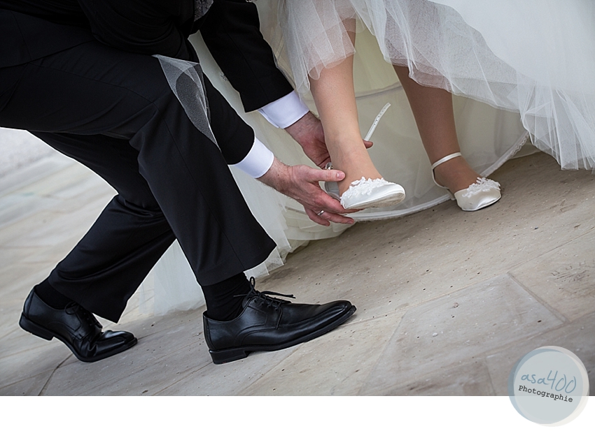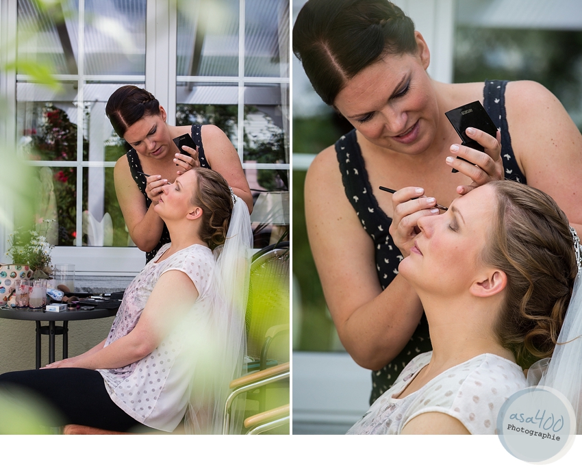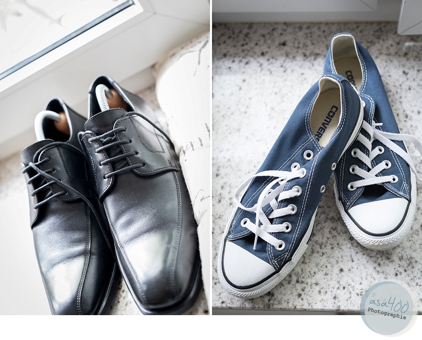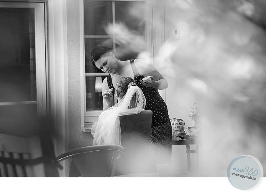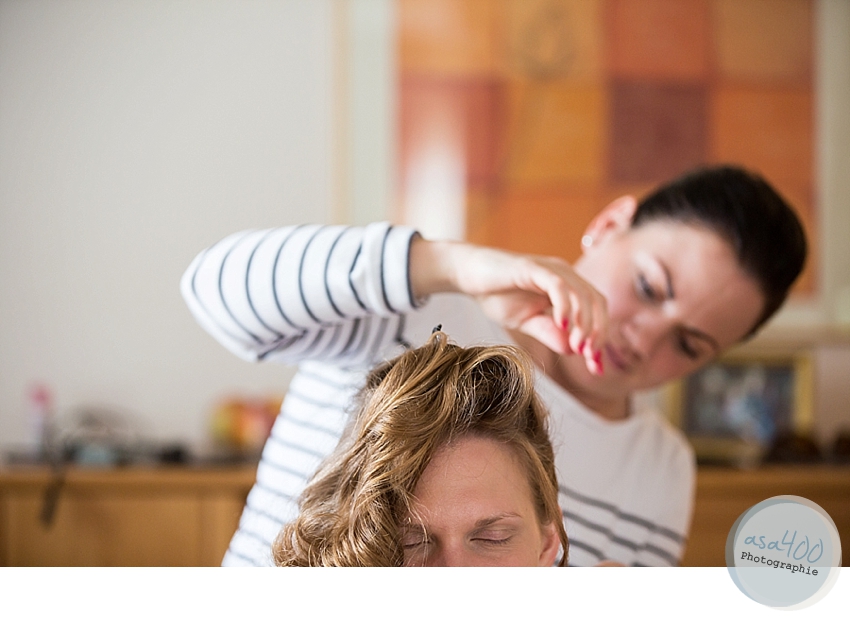 Sabrina & Christian haben wir im vergangenen Jahr auf der Hochzeit von Rebecca & Heiko kennen gelernt und die Beiden haben uns vom Fleck weg auch für Ihre Hochzeit engagiert – das ist immer ein tolles Kompliment für uns! Und deswegen haben wir uns auch besonders gefreut, dass wir schon beim Anziehen von Sabrina & Christian dabei sein durften. Das ist einer der privatesten Momente an diesem Tag, bei denen nur wenige Auserwählte dabei sein dürfen – und wir eben auch! 🙂 Beim Stylen und Anziehen kann man manchmal richtig spüren wie die Aufregung bei allen steigt! Und dass Kleinigkeiten nicht ganz so klappen wie geplant, ist auch normal – merkt hinterher keiner!