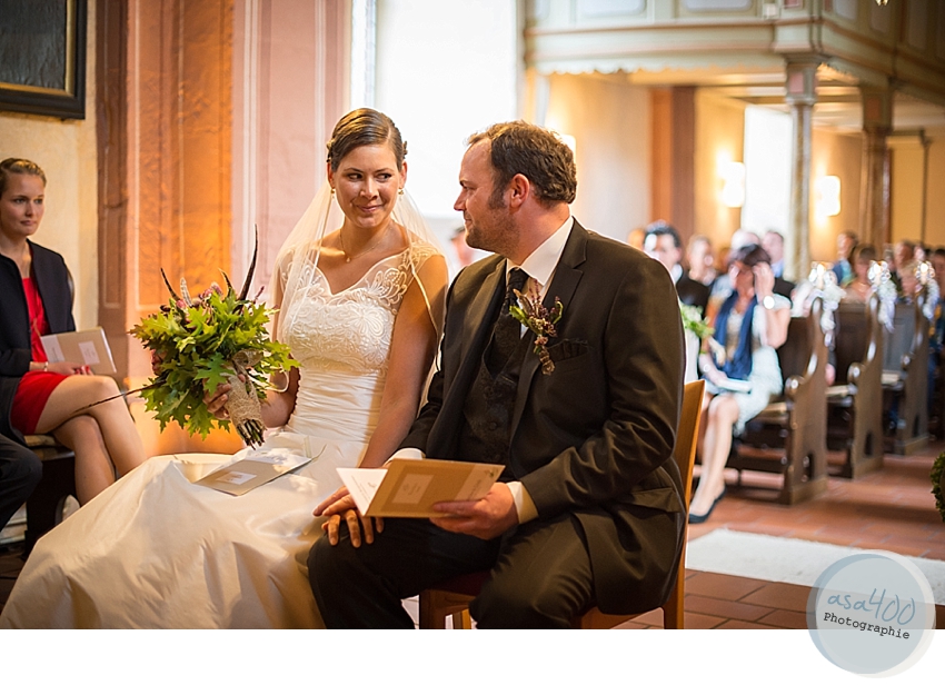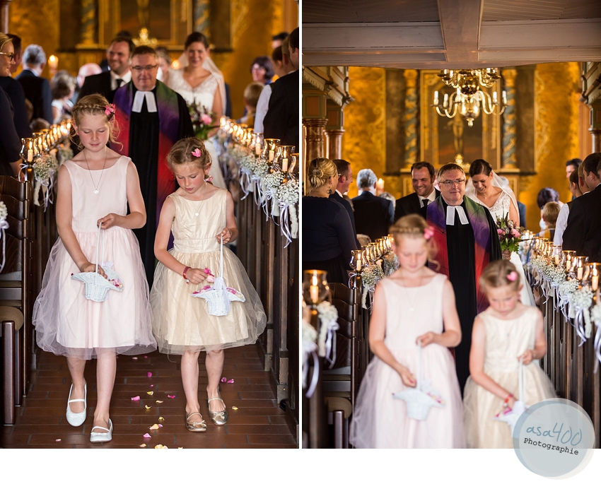 Mareike & Dirk zogen gemeinsam in die Kirche ein. Ein überwältigender Moment – wir wissen das noch aus eigener Erfahrung! Und die Beiden gaben sich gemeinsam das Eheversprechen, begleitet von sanfter Musik und der ein oder anderen Freudenträne.