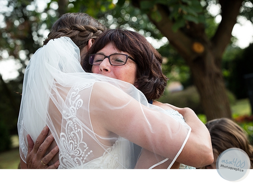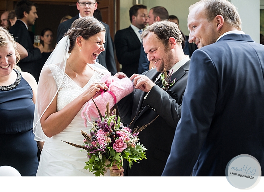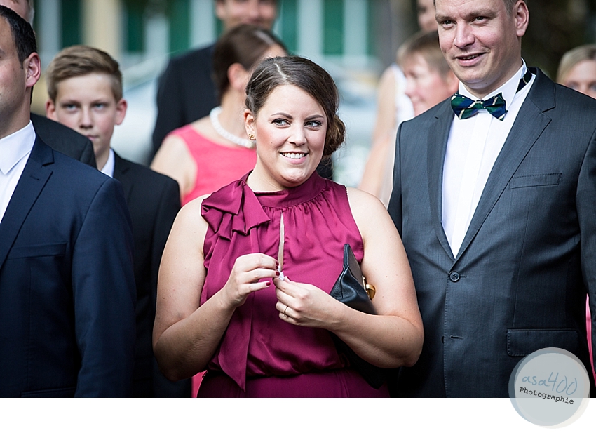 Nach der Trauung wurde geherzt, gratuliert, gesägt und angestoßen. So wie es sein muss!