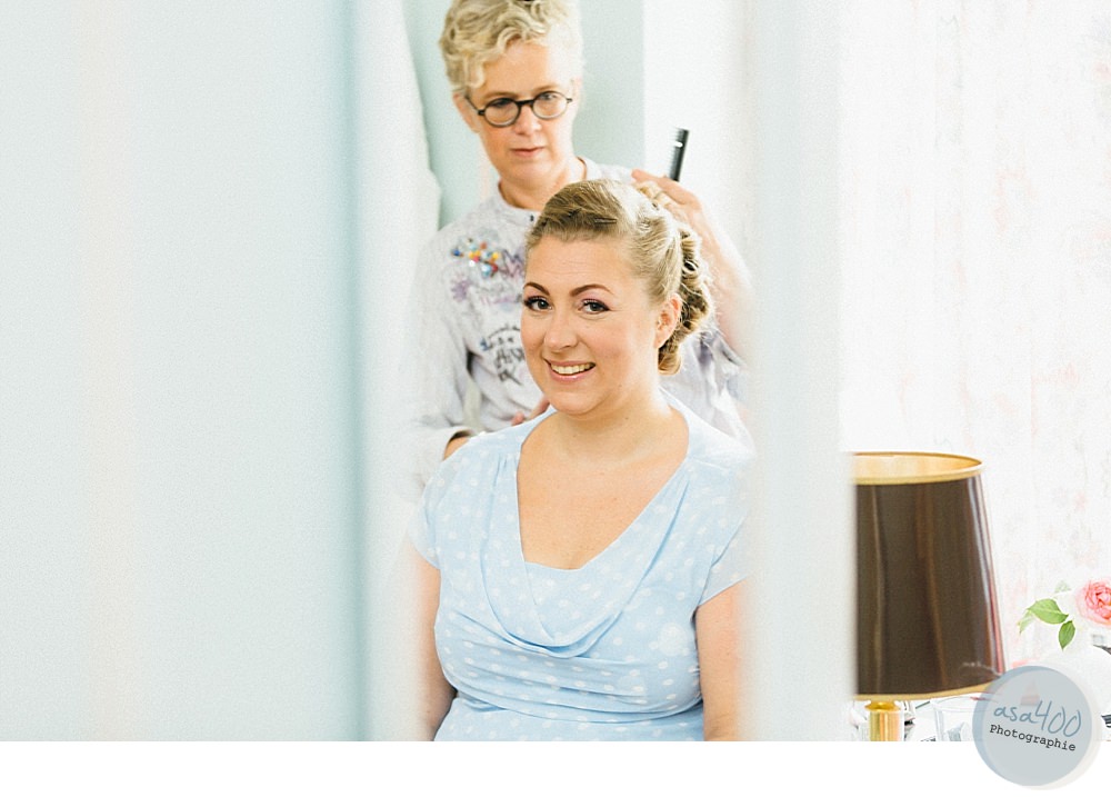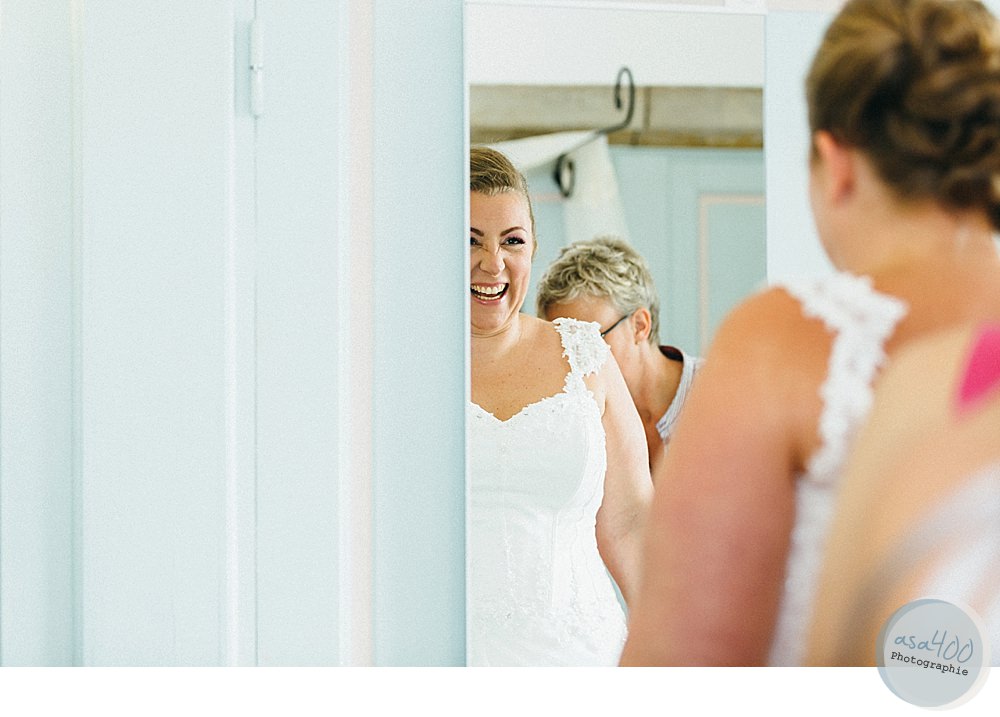 Ein zweites Mal machten sich die Beiden ganz besonders chic füreinander. Und, ja, ein bisschen Aufregung gehört schon dazu. Spätestens wenn Braut in ihr wunderschönes Kleid schlüpft. Das ist einer dieser magischen Momente an diesem besonderen Tag.