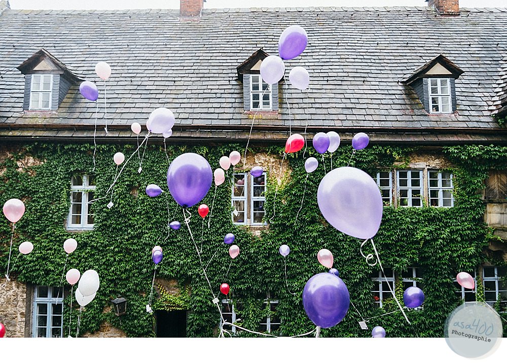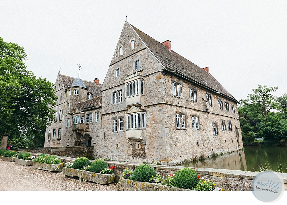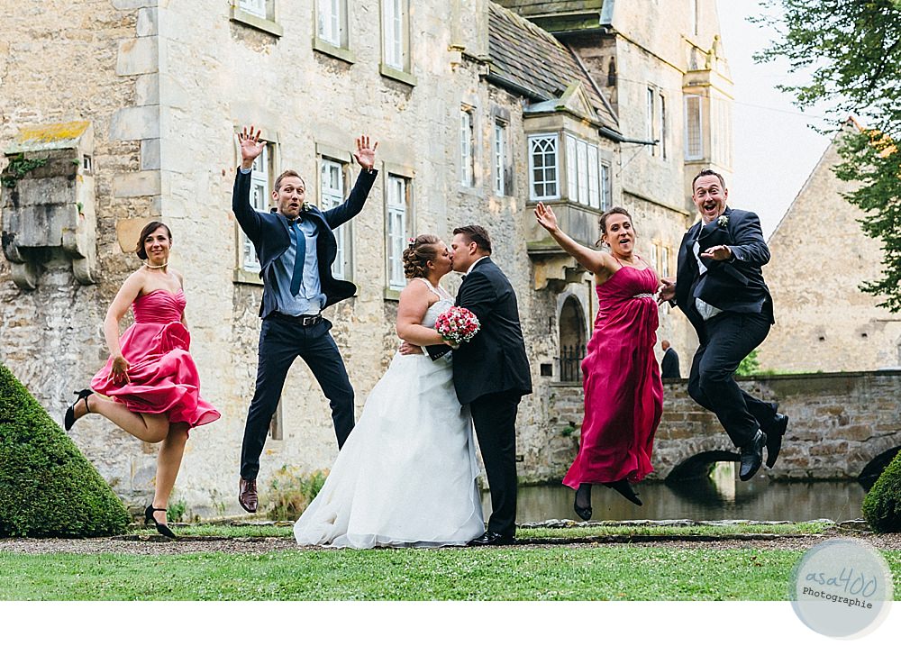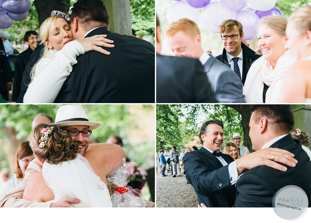 Da der Weg zum Wasserschloss nur einen Katzensprung weit entfernt ist, zog die Hochzeitsgesellschaft zu Fuß zum Wasserschloss, um dort miteinander zu feiern und zu lachen und den Tag in vollen Zügen zu genießen. Und wir durften mittendrin dabei sein.