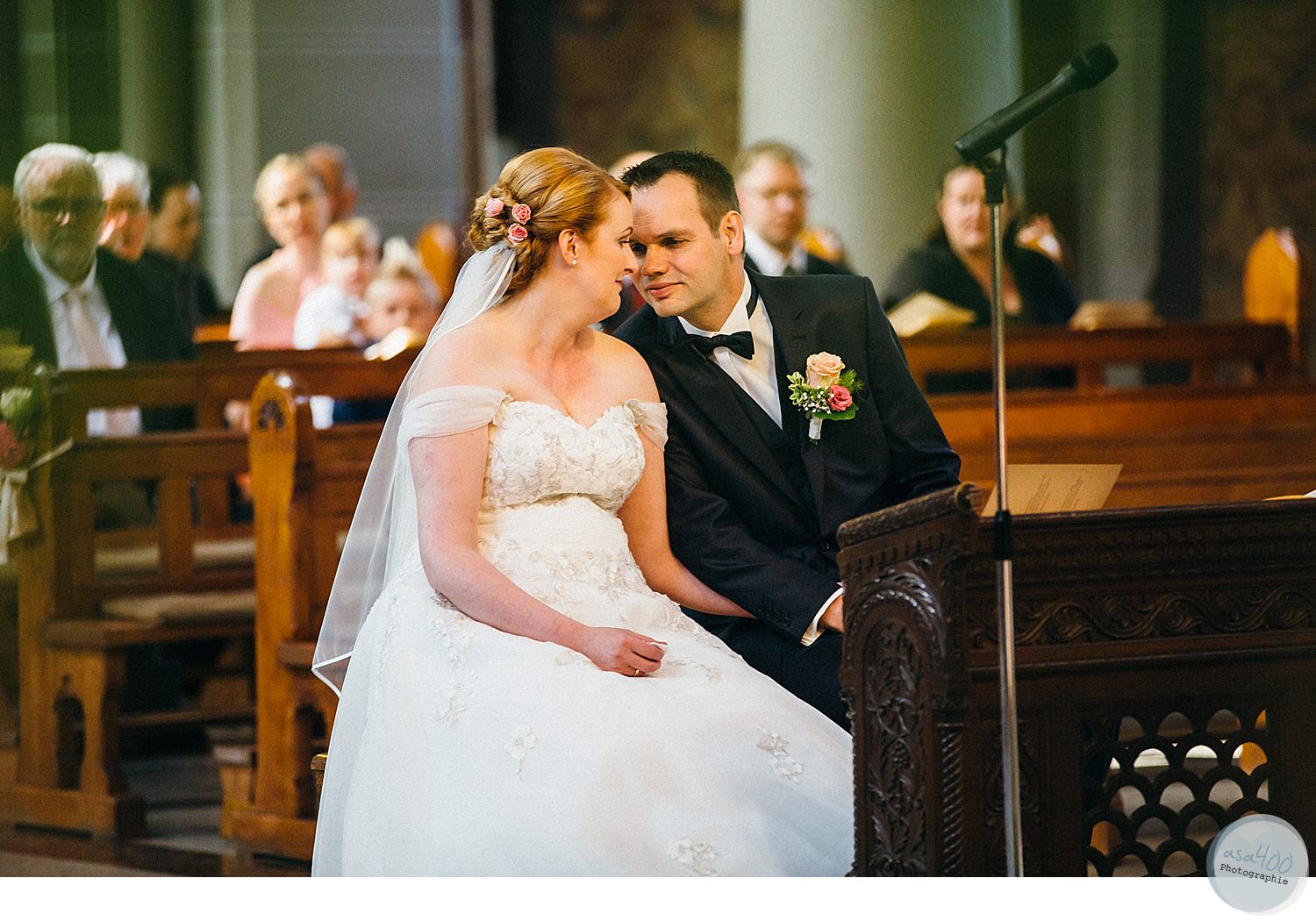 Das Glück stand Mechthild & Stephan bei ihrer ersten Begegnung an der St.Cäcilia-Kirche in Harsum an diesem wunderschönen Tag ins Gesicht geschrieben. Nach so viel Vorbereitung und Vorfreude ist das einer der schönsten Momente an einem Hochzeitstag. So kurz und doch so magisch! Die Beiden strahlten so sehr vor Glück, dass es sich sofort auf jeden übertrug, der Mechthild & Stephan in diesem Moment sehen konnte. Und auch in der Kirche schwebte das Glück über ihnen. Sie sagten Ja zueinander und wurden dabei von traumhafter Musik ihrer Sängerin Madeleine begleitet und von ihren Liebsten unterstützt.