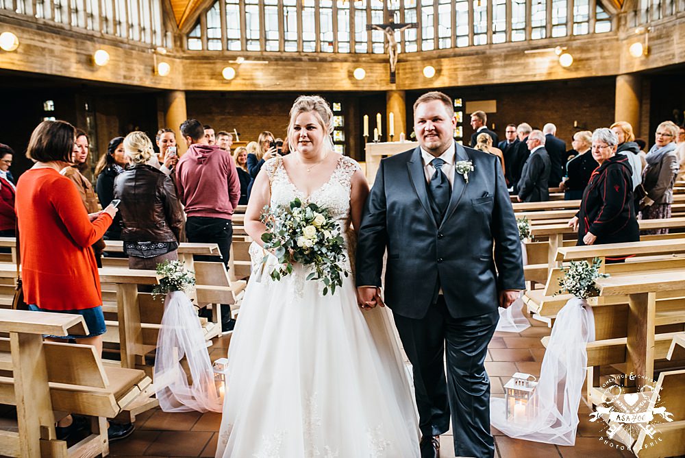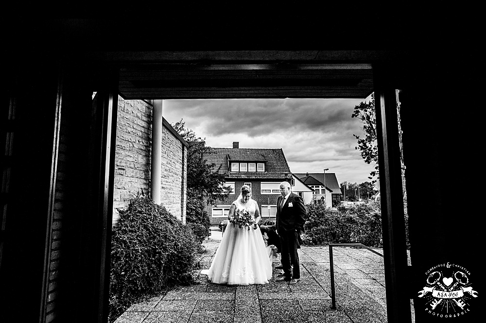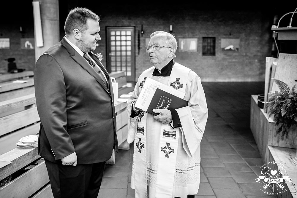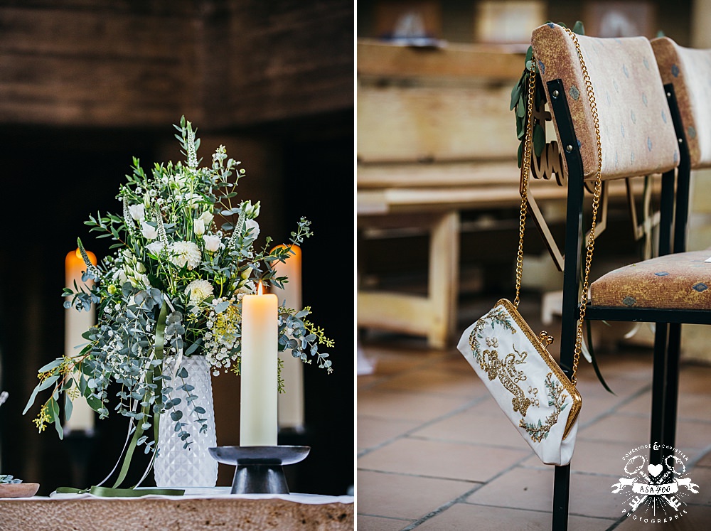 Als wir an diesem Samstag in der St.Maria-Kirche in Ahrbergen ankamen, herrschte drinnen schon ein kleines aufgeregtes Treiben. Dank einer wunderbar detailverliebten Braut und Frau Blume, deren Arbeit wir in diesem Jahr mehrfach erleben durften, war die Kirche mit so viel Liebe zum Detail geschmückt… Und wir (das ist das allererste Mal in fast 10 Jahren Hochzeitsfotografie) bekamen noch VOR unserer eigentlichen Arbeit Geschenke: Kleine Hochzeitstag-Survival-Tüten, die uns wirklich nützlich waren an diesem Tag. Vielen vielen Dank ihr Zwei! 🙂