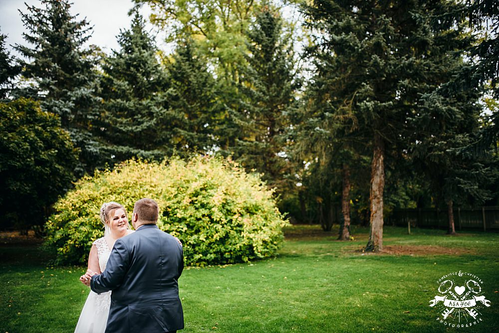 Auf dem Gutshof haben sich Celina & Sebastian ganz viel Zeit genommen, um sich von uns im Park fotografieren zu lassen. Sie waren so süß und glücklich miteinander und genau in diesem Moment kamen die ersten Sonnenstrahlen an diesem Tag heraus.