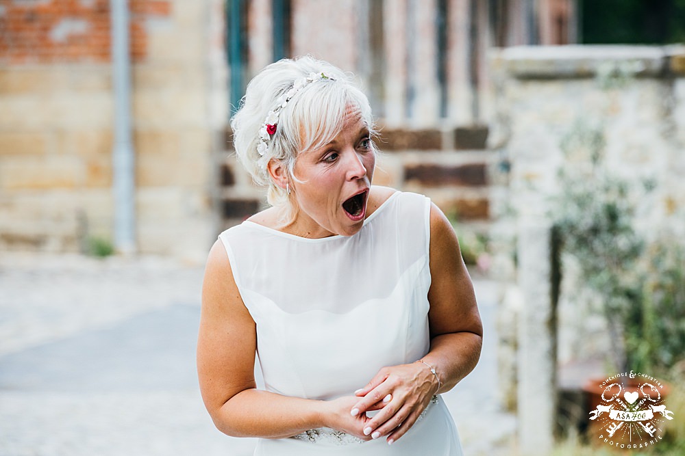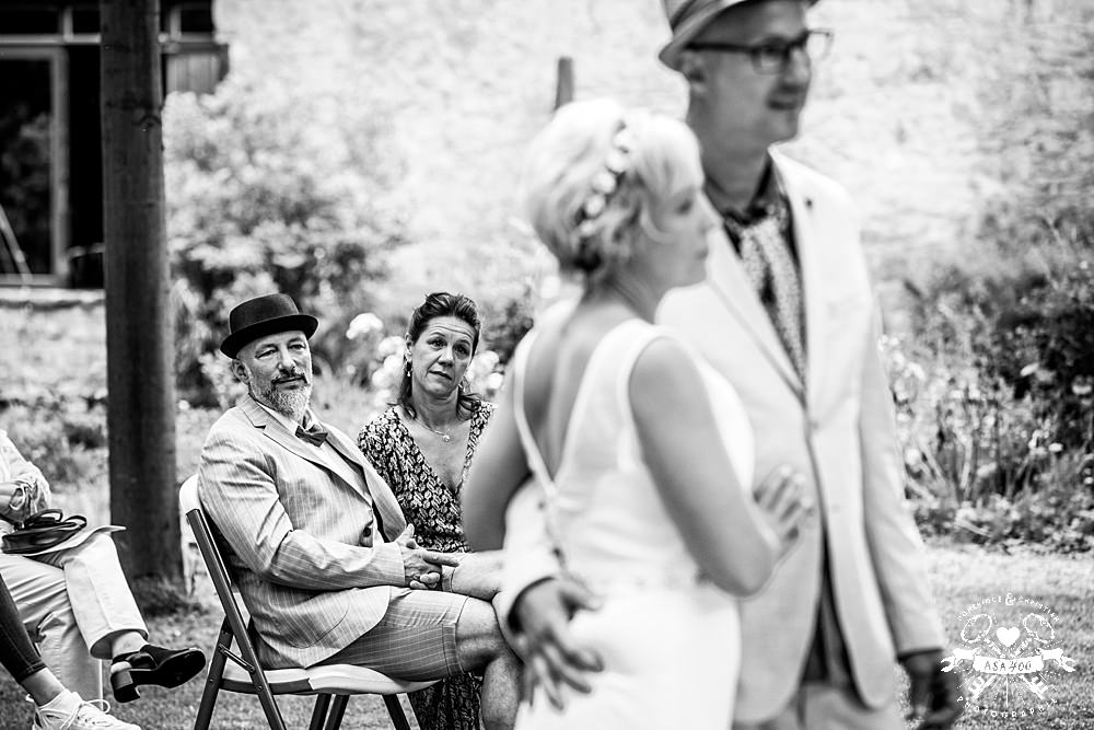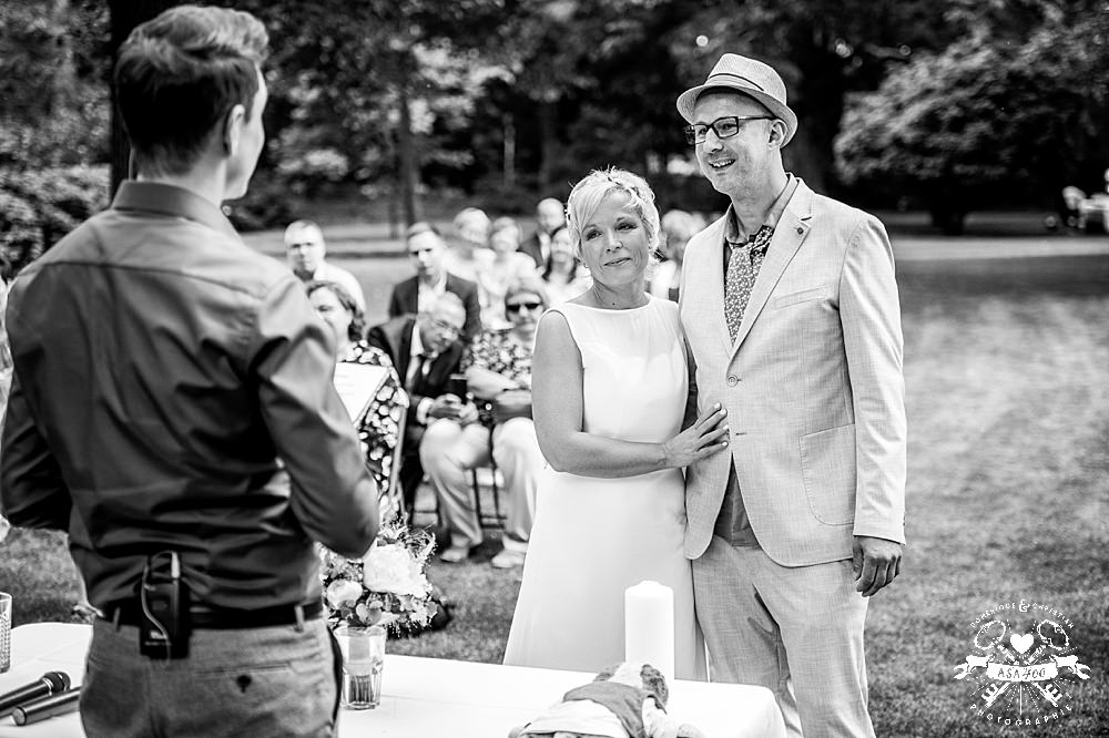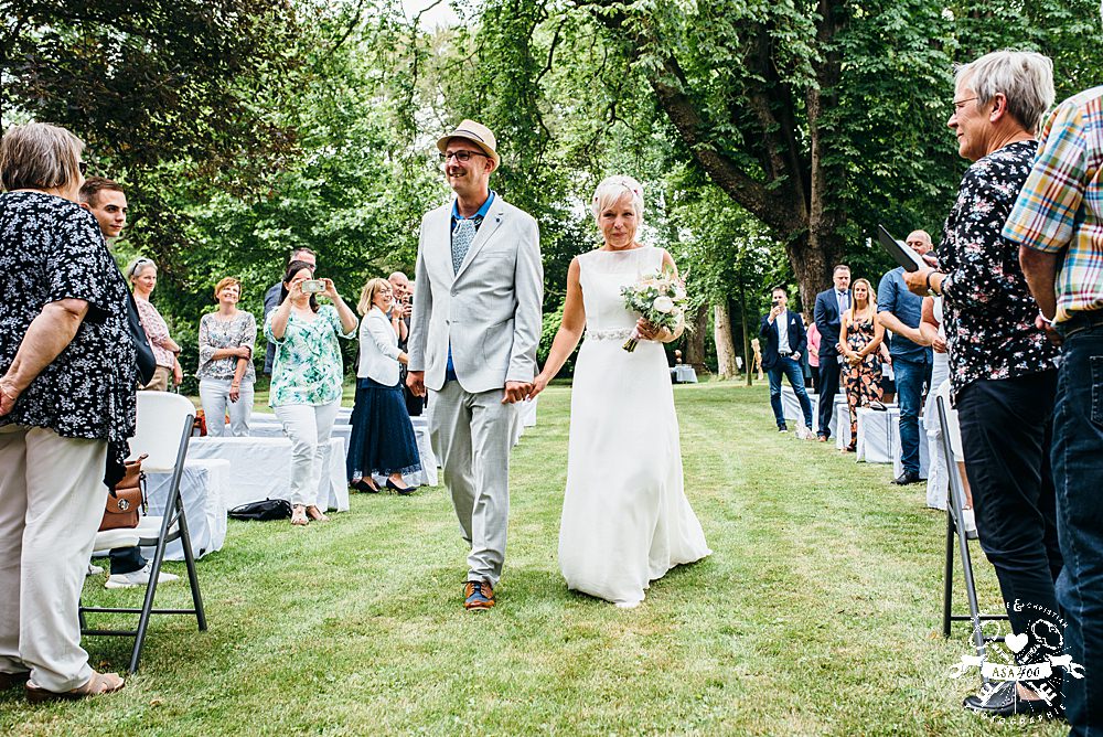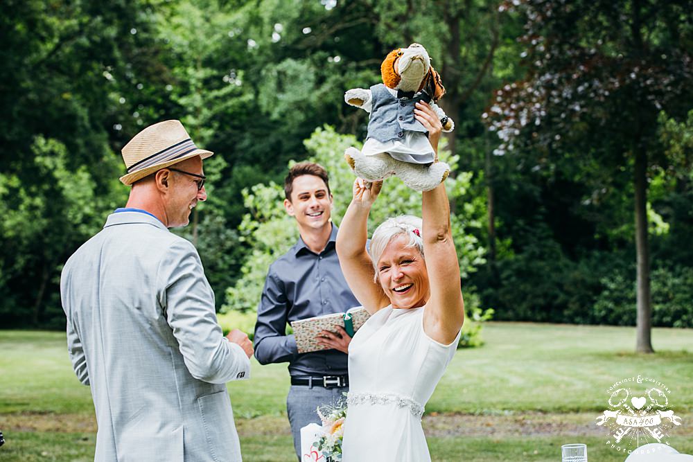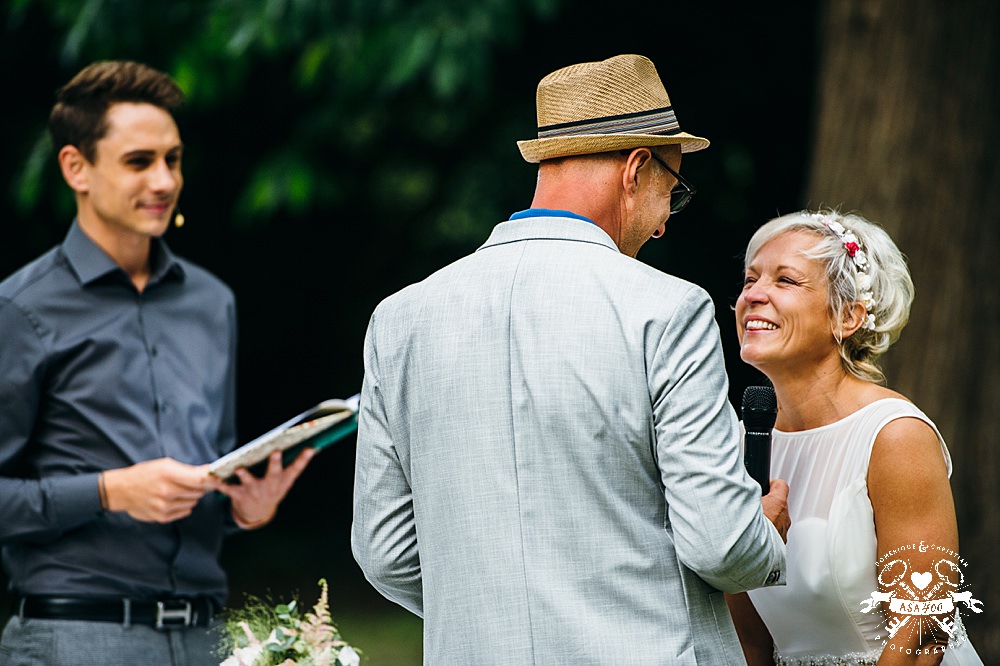 Wuschel wurde von ihrem Vater zu Tommy begleitet und ab diesem Zeitpunkt sprühten die Funken zwischen ihnen. Was folgte waren wundervolle Worte des Trauredners Pat, Wünsche ihrer Liebsten, ein ganz besonders geliebter Ringträger und ein feucht-fröhlicher Ringwechsel, den wir so in 10 Jahren Hochzeitsfotografie noch nicht erlebt haben.