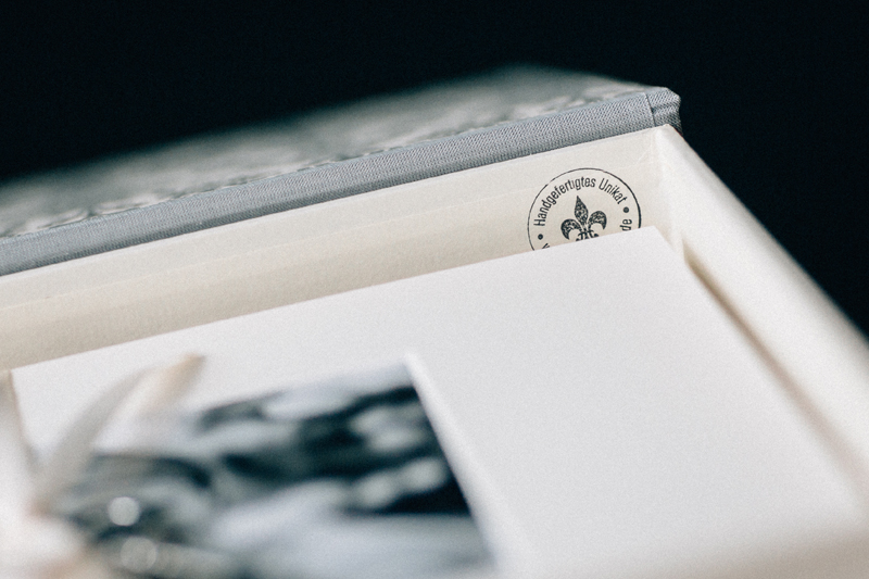 Die Fotos in den Passpartouts und den USB-Stick übergeben wir euch in einer edlen Hochzeitsbox. Diese wird individuell für euch in Nürnberg bei unserer Buchbinderin liebevoll hergestellt.